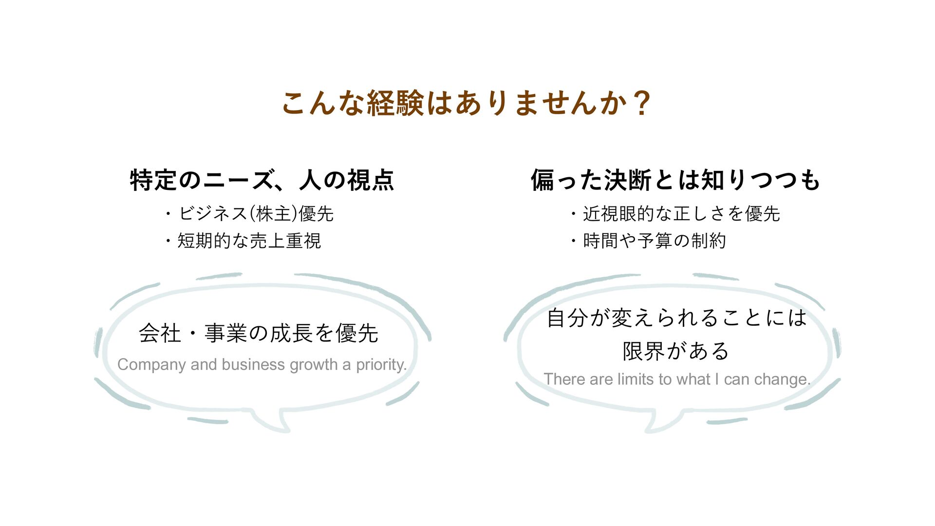ਓؒத৺ͱ͍͏ Ϗδωεத৺ ࣋ଓՄೳੑ σβΠϯ࣌ͱͱʹมԽ͖ͯͨ͠ɺਓؒத৺σβΠϯͱ͍͏ࢹ͚ͩͰɺ ࣋ଓՄೳੑɺෆެฏɺภݟͳ͖ͷͷଘࡏΛଊ͖͑Ε͍ͯͳ͍ ෆެฏ ภݟ ྙཧײ ੜଶܥ ਓؒͷརӹརศੑ