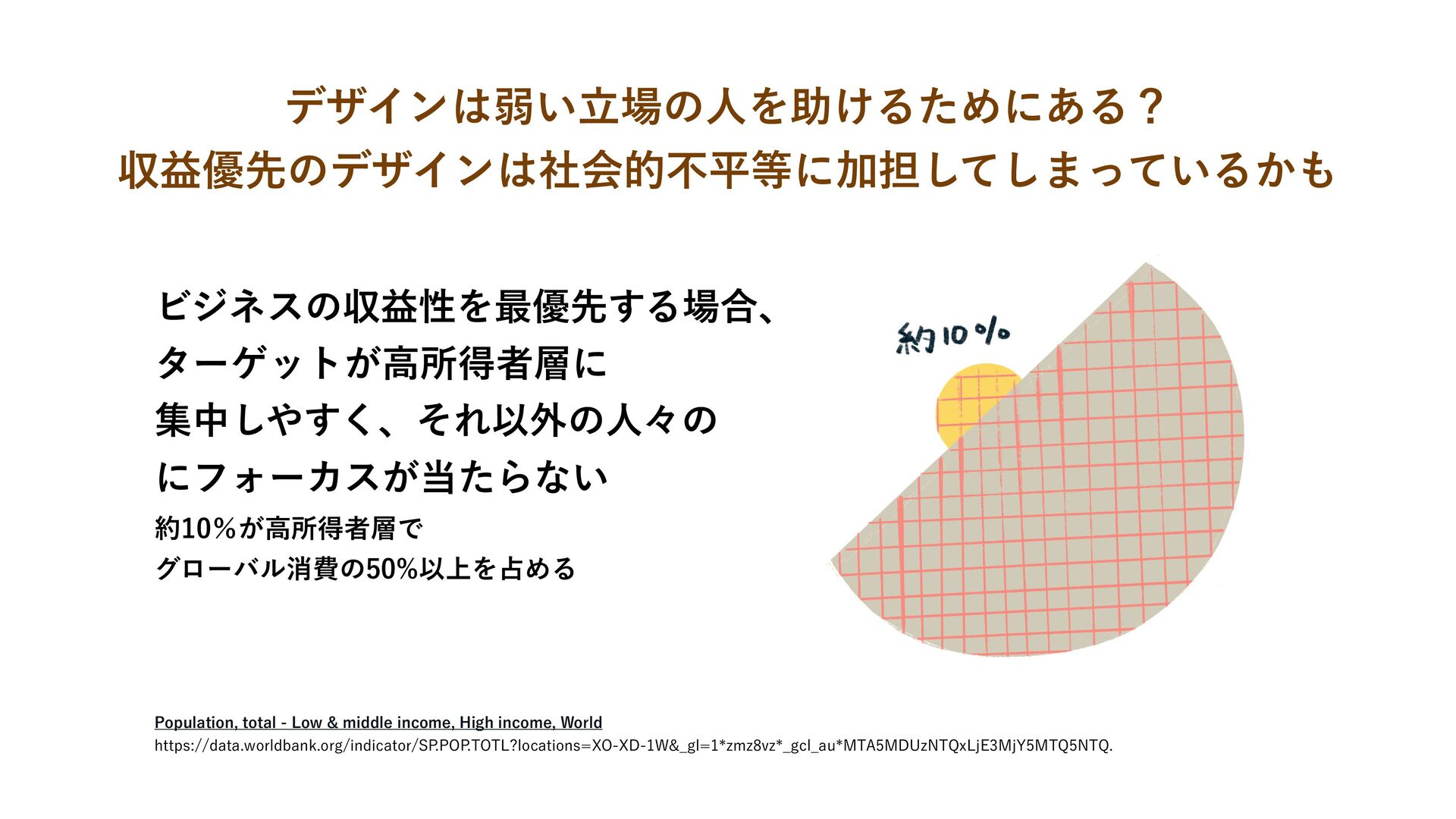.5".%6[/52Y-K&.K:.52/52 σβΠϯऑཱ͍ͷਓΛॿ͚ΔͨΊʹ͋Δʁ ऩӹ༏ઌͷσβΠϯࣾձతෆฏʹՃ୲ͯ͠͠·͍ͬͯΔ͔ ϏδωεͷऩӹੑΛ࠷༏ઌ͢Δ߹ɺ λʔήοτ͕ߴॴಘऀʹ ूத͘͢͠ɺͦΕҎ֎ͷਓʑͷ ʹϑΥʔΧε͕ͨΒͳ͍ ˋ͕ߴॴಘऀͰ άϩʔόϧফඅͷҎ্ΛΊΔ