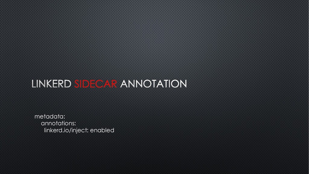 SIDECAR metadata: annotations: linkerd.io/inject: enabled