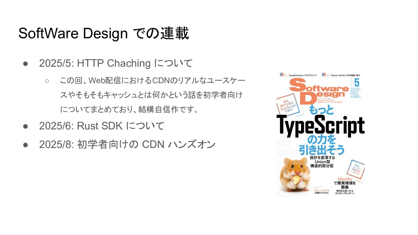 SoftWare Design での連載 • 2025/5: HTTP Chaching について ◦ この回、Web配信におけるCDNのリアルなユースケー