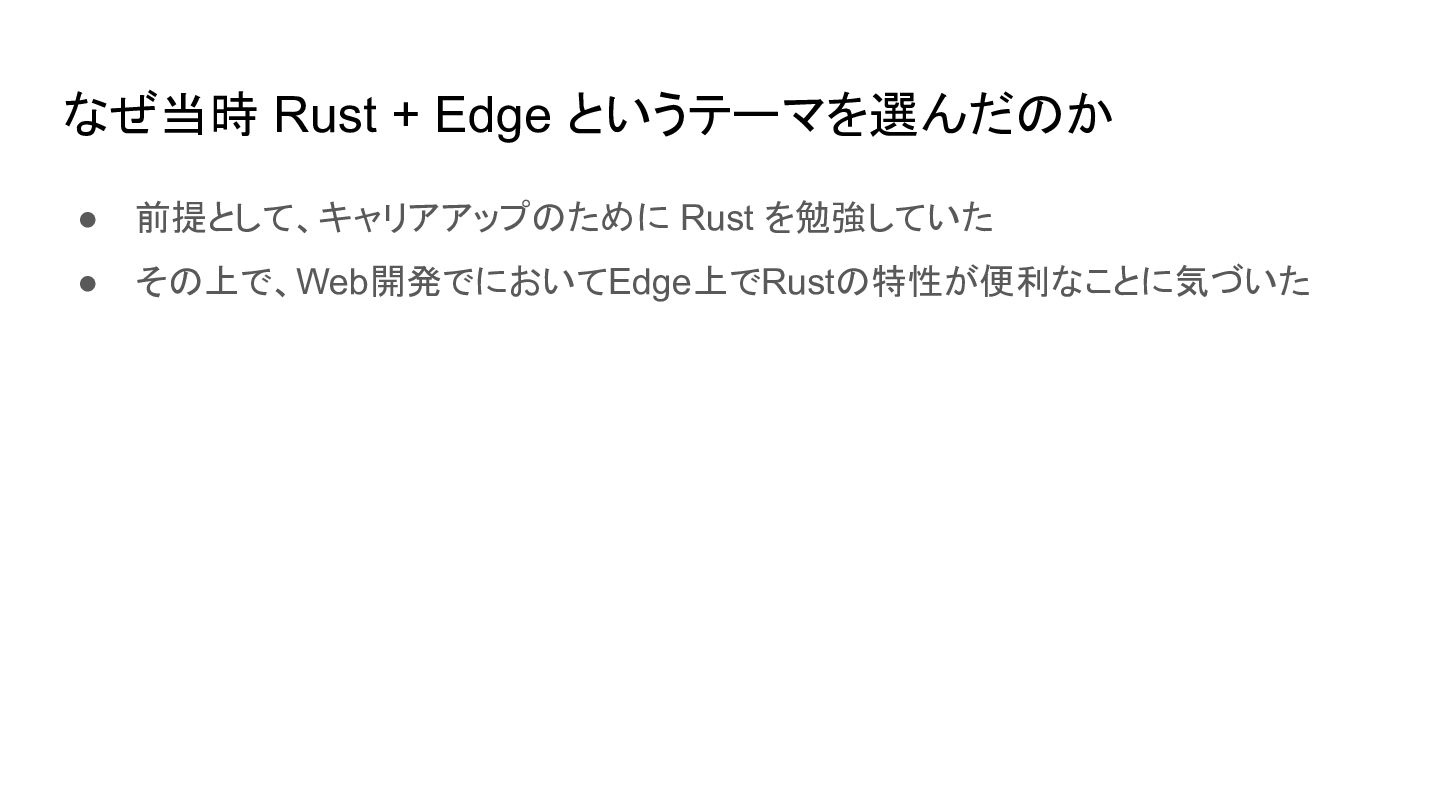 なぜ当時 Rust + Edge というテーマを選んだのか • 前提として、キャリアアップのために Rust を勉強していた •