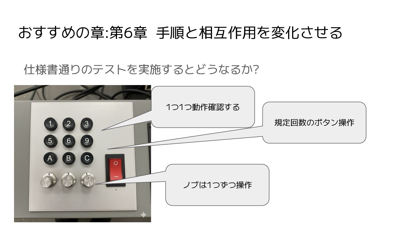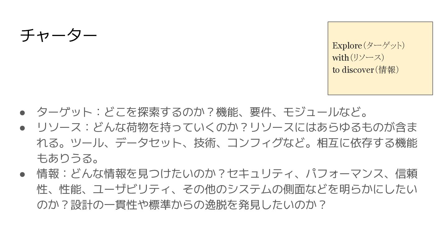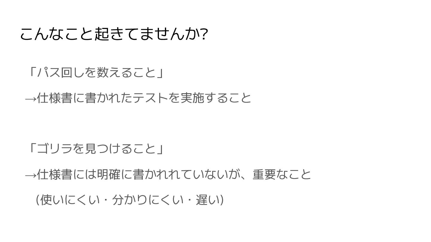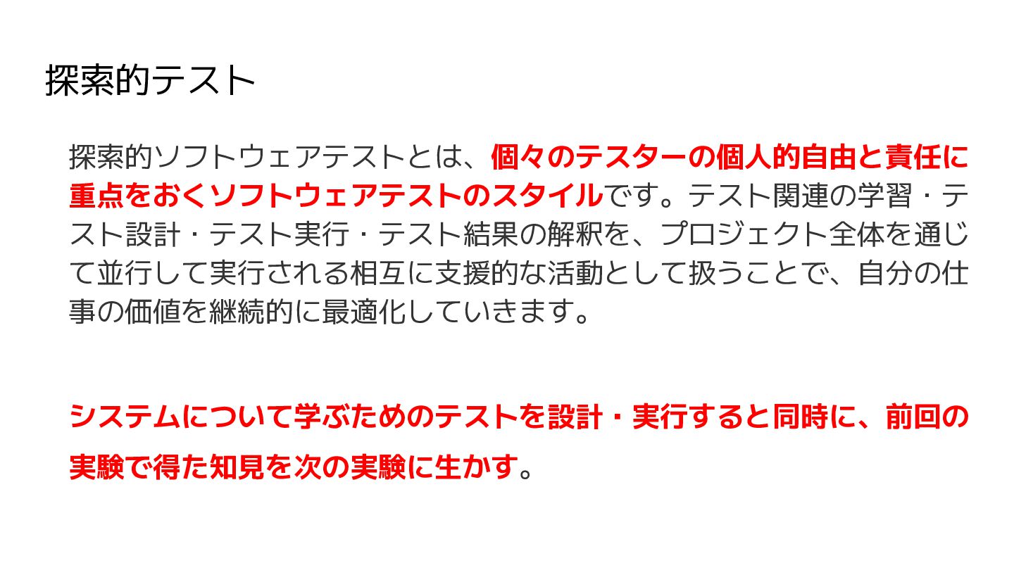 stringB) calculateSimilarity(3, 5); // 整数型は文字列 型ではないので無効です calculateSimilarity(); // 2つのパラメータを必要とするため無効です calculateSimilarity( "a" , "a" ); calculateSimilarity( "a" , "z" ); calculateSimilarity( "" , "" ); calculateSimilarity(null, null); String myString = "100文字程度の長文 ... calculateSimilarity(myString, myString); Javaコンパイラの探索に なってしまう 正常な結果を確認 エラーになる結果を確認 性能の問題を検知 この辺はかなりAIの活 用が有効になってくる