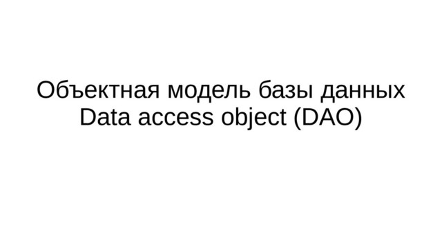 в код с API DAO • Добавление элементов в базу: cоздаём объект, помещаем в базу через XxxTable.insert • Выборка элементов: через XxxTable.getXxx, итерация по списку объектов