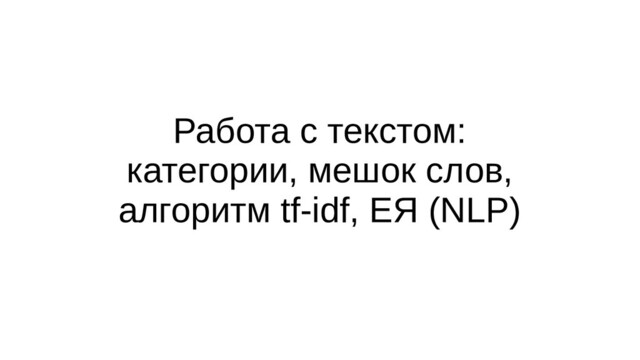 признака x j — последовательность слов (w 1 , w 2 , …, w m ) • В отличие от категорий, мы не рассматриваем признак как монолитное значение (значение ячейки целиком), а разбиваем его на составляющие и работаем с ними