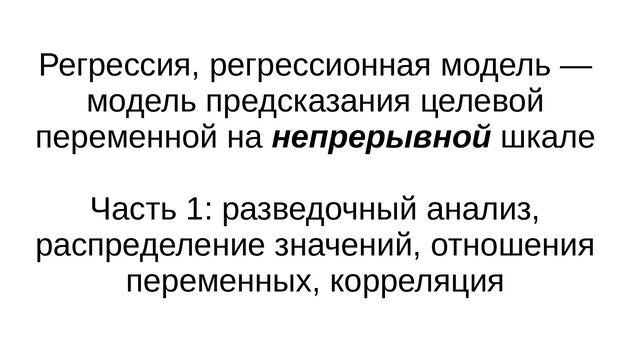 Регрессия, регрессионная модель — модель предсказания целевой переменной на непрерывной шкале