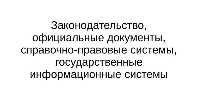 - Законодательство, официальные документы, справочно-правовые системы, государственные информационные системы