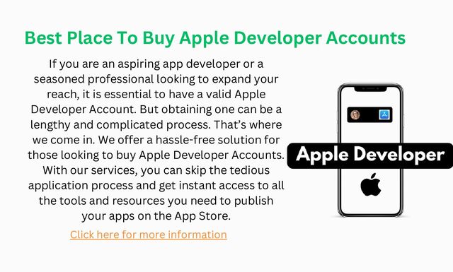 If you are an aspiring app developer or a seasoned professional looking to expand your reach, it is essential to have a valid Apple Developer Account. But obtaining one can be a lengthy and complicated process. That’s where we come in. We offer a hassle-free solution for those looking to buy Apple Developer Accounts. With our services, you can skip the tedious application process and get instant access to all the tools and resources you need to publish your apps on the App Store. visit our site > https://developeracc.com/