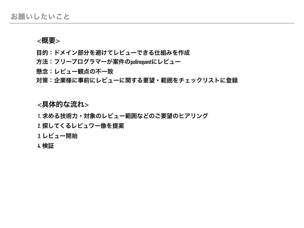 pr pr 3 4 1 ※ ࣮ࡍͷαʔϏε͸اۀ͕P.RαʔϏεʹReoisitoryΛίϐʔ͠·͢ɻ ϑϦʔϓϩάϥϚʔ ελʔτΞοϓ 1. 2. 3. RepoΛ઀ଓ PRΛ֬ೝ PRΛϦΫΤετ 4. PRΛϨϏϡʔ ϨϏϡʔͷࣗಈԽ ϑϦʔϓϩάϥϚʔ ϑϦʔϓϩάϥϚʔ 1 1 2 4 3 3 4 4 1 2 2 ελʔτΞοϓ ελʔτΞοϓ GitHub Repo GitHub Repo pr pr Ωϡʔ Ωϡʔ Ωϡʔ