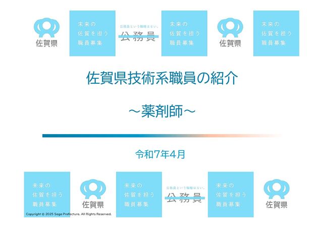 て 最近の入庁者に公務員になって「よかったこと」、「伝えたいこと」を尋 ねてみました!! • 薬剤師だけでなく、様々な分野の人(職員、業者さんを含む)と接することができる。 • 休みが多く、取得しやすい(1時間若しくは30分単位で取得できる)。 • 病院や薬局等とは違う行政の業務を経験できること。 • 薬以外のさまざまな分野の知識を得られ、自分の考えや視野が広がる。 • 定期的な異動により、いろいろな仕事が経験できること。 • 薬局などに比べて、職員数が多いこと。 • 夜勤や休日出勤がないこと。(※1) • 住居手当など福利厚生がしっかりしていて安心して生活できる。 • テレワークや在宅勤務など必要に応じて柔軟な働き方ができる。 よかったこと、伝えたいこと (※1)緊急時やイベント開催時は除く • どの職種を選択するにしても、自分が何をしたいのかどのような薬剤師になりたいかを一生懸 命に考えて、信念を持って就職活動、試験勉強に励んで欲しいと思います。 • 少しでも興味があるなら、一度薬務課へ遊びに来てみませんか? • 佐賀県庁で一緒に働けることを楽しみにお待ちしています。 先輩職員からのエール Copyright © 2025 Saga Prefecture. All Rights Reserved.
