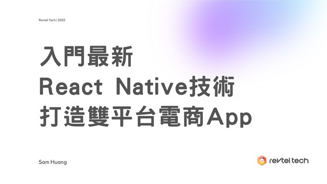 入門最新 React Native技術 打造雙平台電商App Sam Huang Revtel Tech | 2020