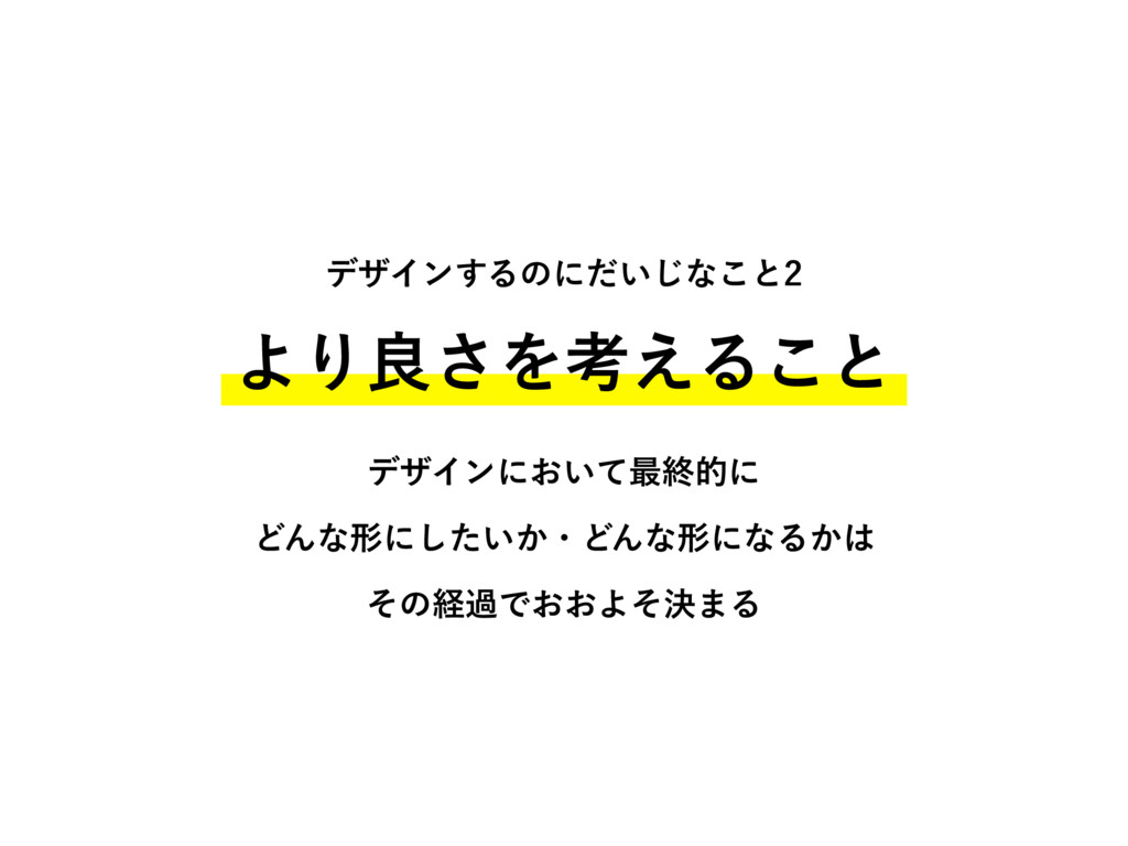 ΑΓྑ͞Λߟ͑Δ͜ͱ σβΠϯ͢Δͷʹ͍ͩ͡ͳ͜ͱ σβΠϯʹ͓͍ͯ࠷ऴతʹ ͲΜͳܗʹ͍͔ͨ͠ɾͲΜͳܗʹͳΔ͔ ͦͷܦաͰ͓͓Αܾͦ·Δ