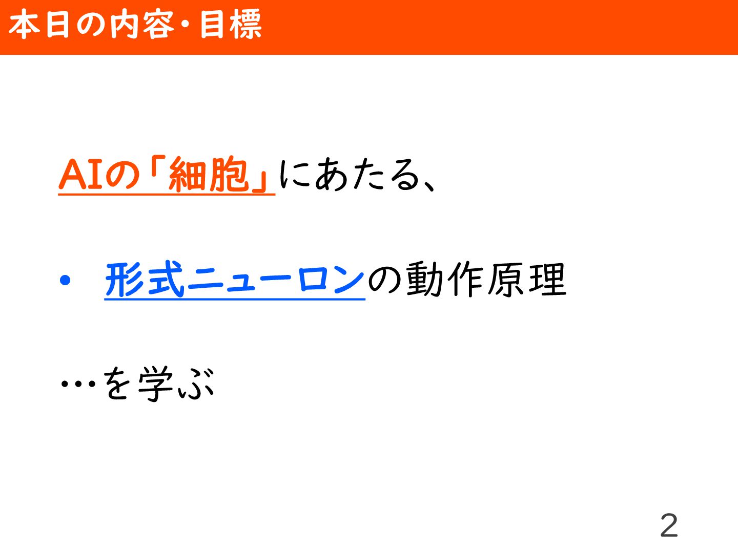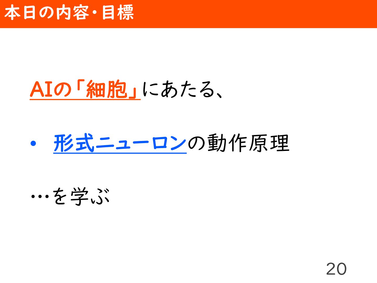 ◆概要 誰もがAIを使う現代では、ただAIサービスを使えるだけでなく、AIの動作原理を理解して活用できる人材が求められます。AIの「細胞」である形式ニューロンの動作を、表計算ソフトを使って学びましょう!