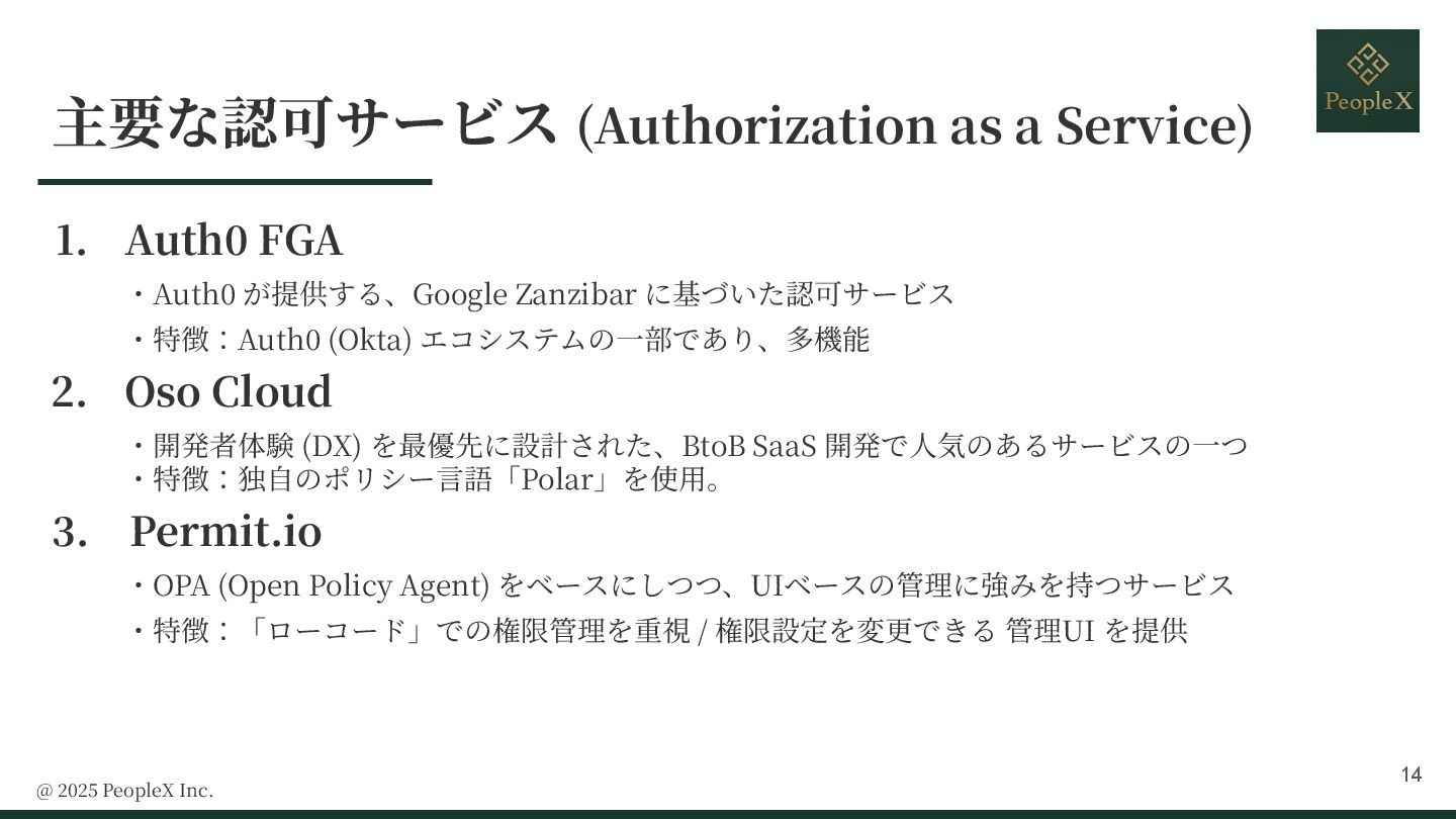 7. 主要な認可サービス (Authorization as a Service) @ 2025 PeopleX Inc. 1.