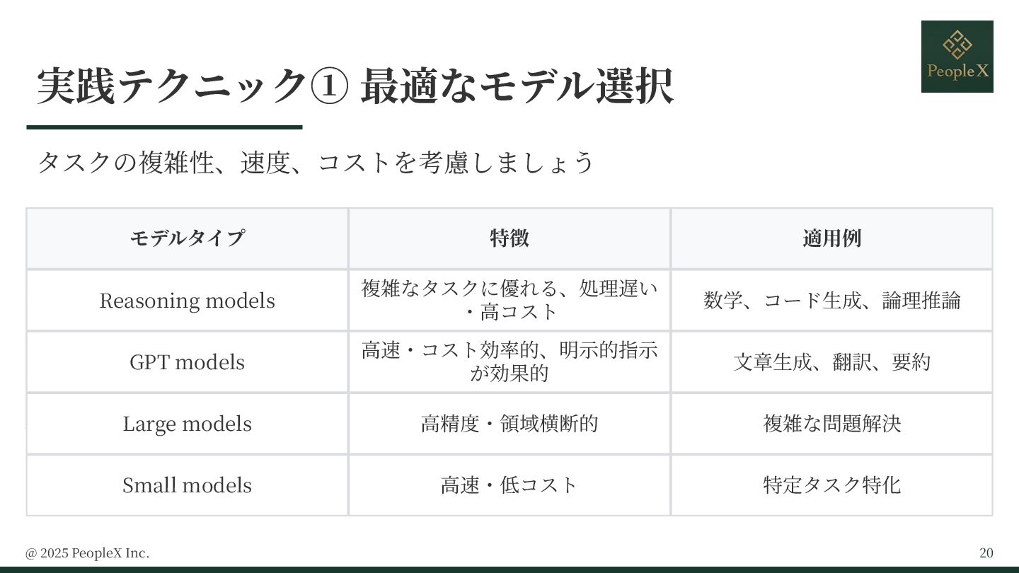 ・最適なモデル選択: タスクに応じた速度・コスト・精度のトレードオフ