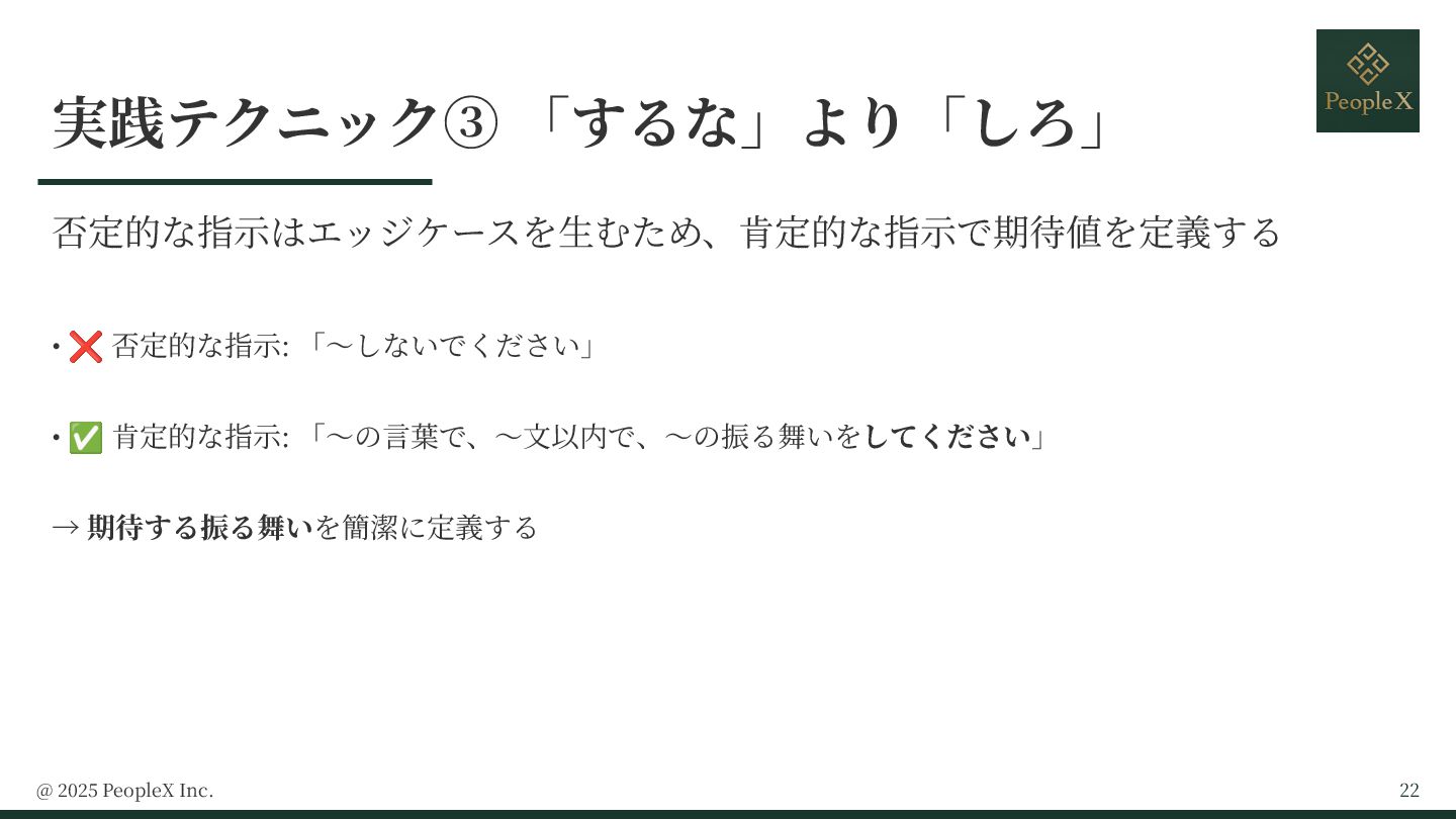 ・「するな」より「しろ」: 期待する振る舞いを簡潔に定義