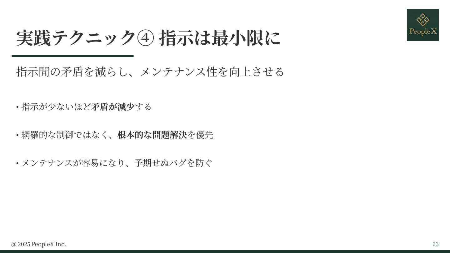 ・指示は最小限に: 根本的な問題解決を優先