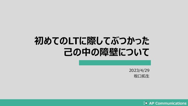 AP Communications 初めてのLTに際してぶつかった 己の中の障壁について 2023/4/29 初めてのLTに際してぶつかった 己の中の障壁について 坂口拓生