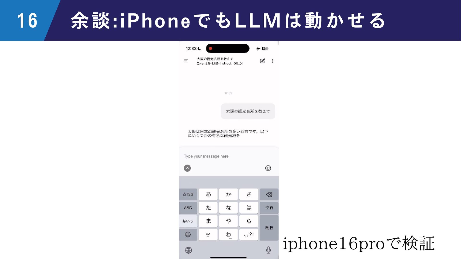 余談:iPhoneでもLLMは動かせる 16 iphone16proで検証