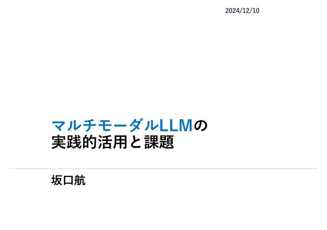 マルチモーダルLLMの 実践的活用と課題 坂口航 2024/12/10
