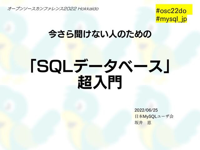 2022/06/25 にオンラインで開催された「オープンソースカンファレンス北海道(OSC-Hokkaido or OSC-do)での、日本MySQLユーザ会枠での発表資料です。