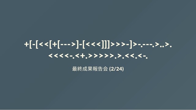 +[-[<<[+[--->]-[<<<]]]>>>-]>-.---.>..>. <<<<-.<+.>>>>>.>.<<.<-. 最終成果報告会 (2/24)