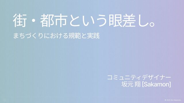 まちづくりにおける規範と実践 ©︎ 2025 sho Sakamoto 街・都市という眼差し。 コミュニティデザイナー 坂元 翔 [Sakamon]