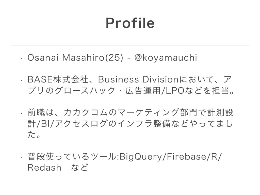 w 0TBOBJ.BTBIJSP !LPZBNBVDIJ w #"4&גࣜձࣾɺ#VTJOFTT%JWJTJPOʹ͓͍ͯɺΞ ϓϦͷάϩʔεϋοΫɾࠂӡ༻-10ͳͲΛ୲ɻ w લ৬ɺΧΧΫίϜͷϚʔέςΟϯά෦Ͱܭଌઃ ܭ#*ΞΫηεϩάͷΠϯϑϥඋͳͲͬͯ·͠