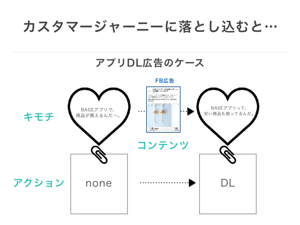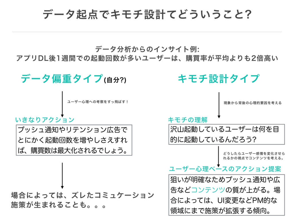 σʔλىͰΩϞνઃܭͯͲ͏͍͏͜ͱ σʔλੳ͔ΒͷΠϯαΠτྫ ΞϓϦ%-ޙिؒͰͷىಈճ͕ଟ͍Ϣʔβʔɺߪങ͕ฏۉΑΓഒߴ͍ σʔλภॏλΠϓ ࣗ ΩϞνઃܭλΠϓ ϓογϡ௨ϦςϯγϣϯࠂͰ ͱʹ͔͘ىಈճΛ૿͑͢͠͞Ε ɺߪങ࠷େԽ͞ΕΔͰ͠ΐ͏ɻ Ϣʔβʔ৺ཧͷߟΛͬ͢ඈ͢ʂ