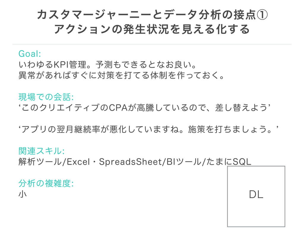 ΧελϚʔδϟʔχʔͱσʔλੳͷᶃ ΞΫγϣϯͷൃੜঢ়گΛݟ͑ΔԽ͢Δ (PBM ͍ΘΏΔ,1*ཧɻ༧ଌͰ͖Δͱͳ͓ྑ͍ɻ ҟৗ͕͋Ε͙͢ʹରࡦΛଧͯΔମ੍Λ࡞͓ͬͯ͘ɻ ݱͰͷձ b͜ͷΫϦΤΠςΟϒͷ$1"͕ߴಅ͍ͯ͠ΔͷͰɺࠩ͠ସ͑Α͏` bΞϓϦͷཌ݄ܧଓ͕ѱԽ͍ͯ͠·͢ͶɻࢪࡦΛଧͪ·͠ΐ͏ɻ` ؔ࿈εΩϧ