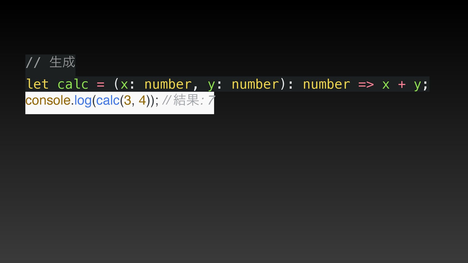 => x + y; console.log(calc(3, 4)); // ݁Ռ: 7