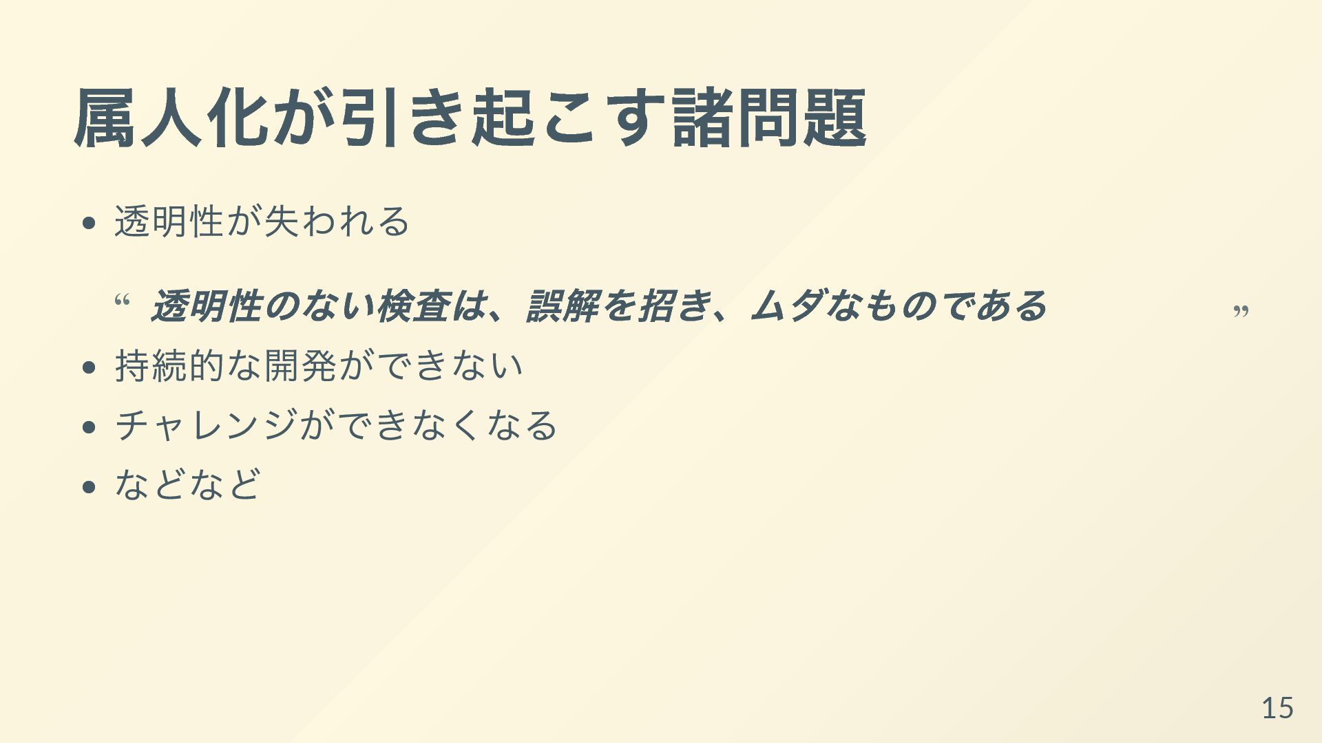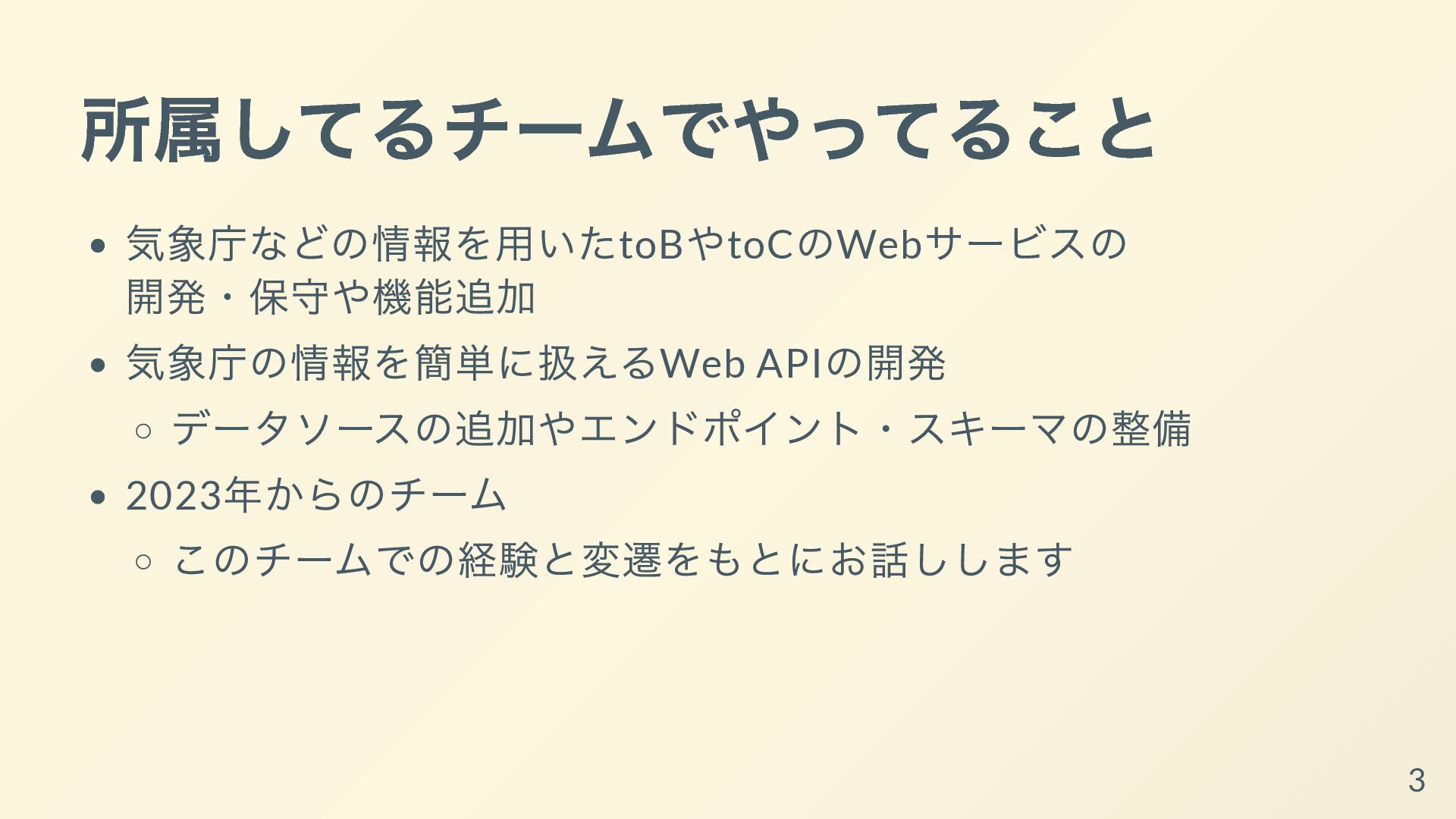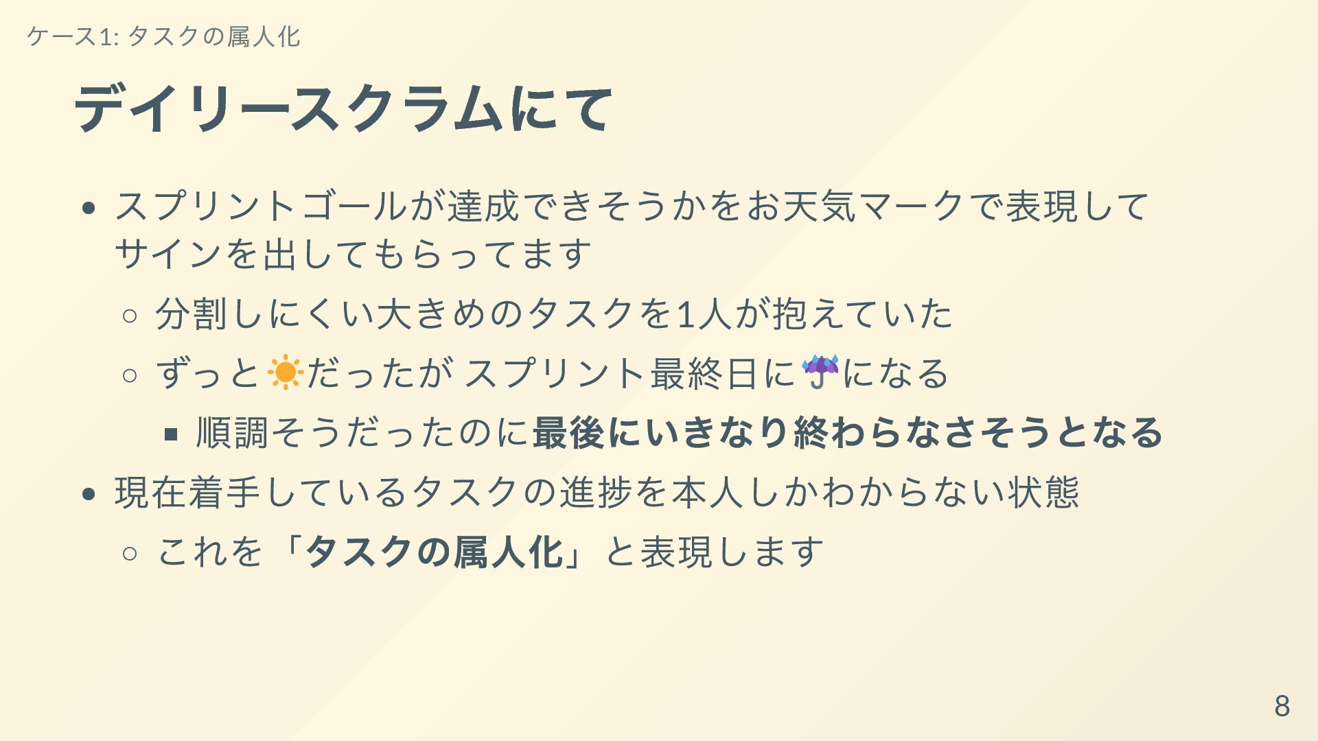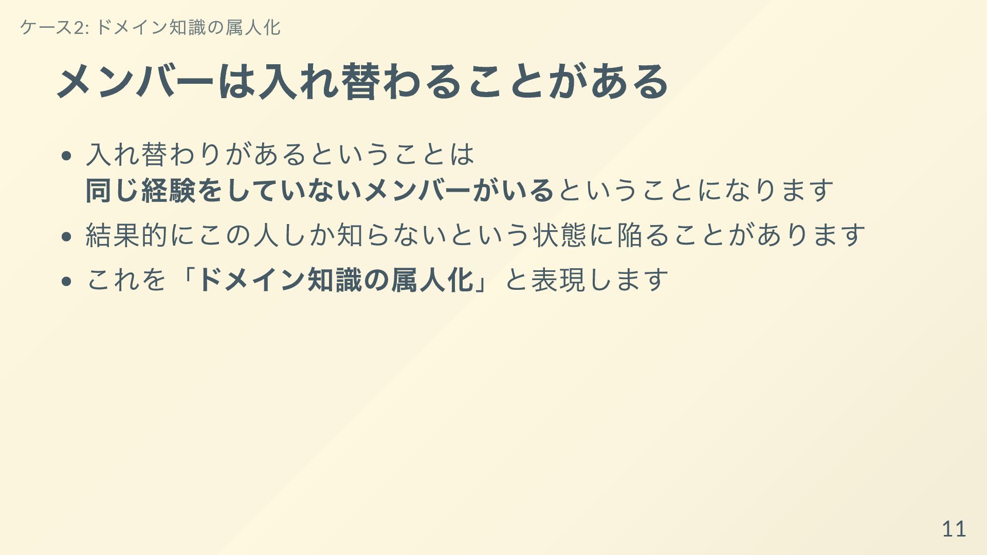その取り組みについて共有し、持ち帰ってもらって明日からあなた達のチームで属人化を減らす手助けができればと思います。