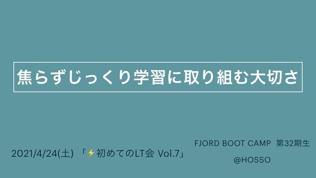 FJORD BOOT CAMP ୈ32ظੜ @HOSSO 2021/4/24() ʮ⚡ॳΊͯͷLTձ Vol.7ʯ যΒͣͬ͘͡ΓֶशʹऔΓΉେ͞