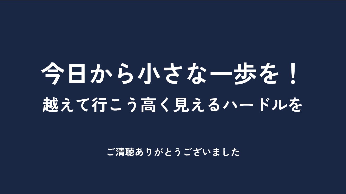 今日から小さな一歩を! 越えて行こう高く見えるハードルを ご清聴ありがとうございました