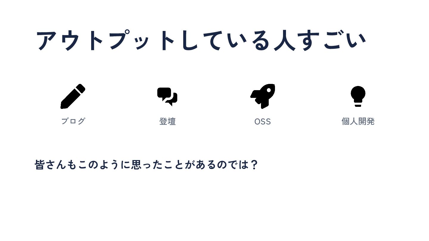 アウトプットしている人すごい ブログ 登壇 OSS 個人開発 皆さんもこのように思ったことがあるのでは?