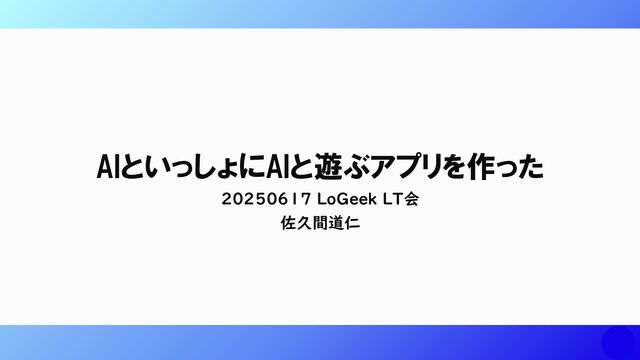 AIといっしょにAIと遊ぶアプリを作った 20250617 LoGeek LT会 佐久間道仁