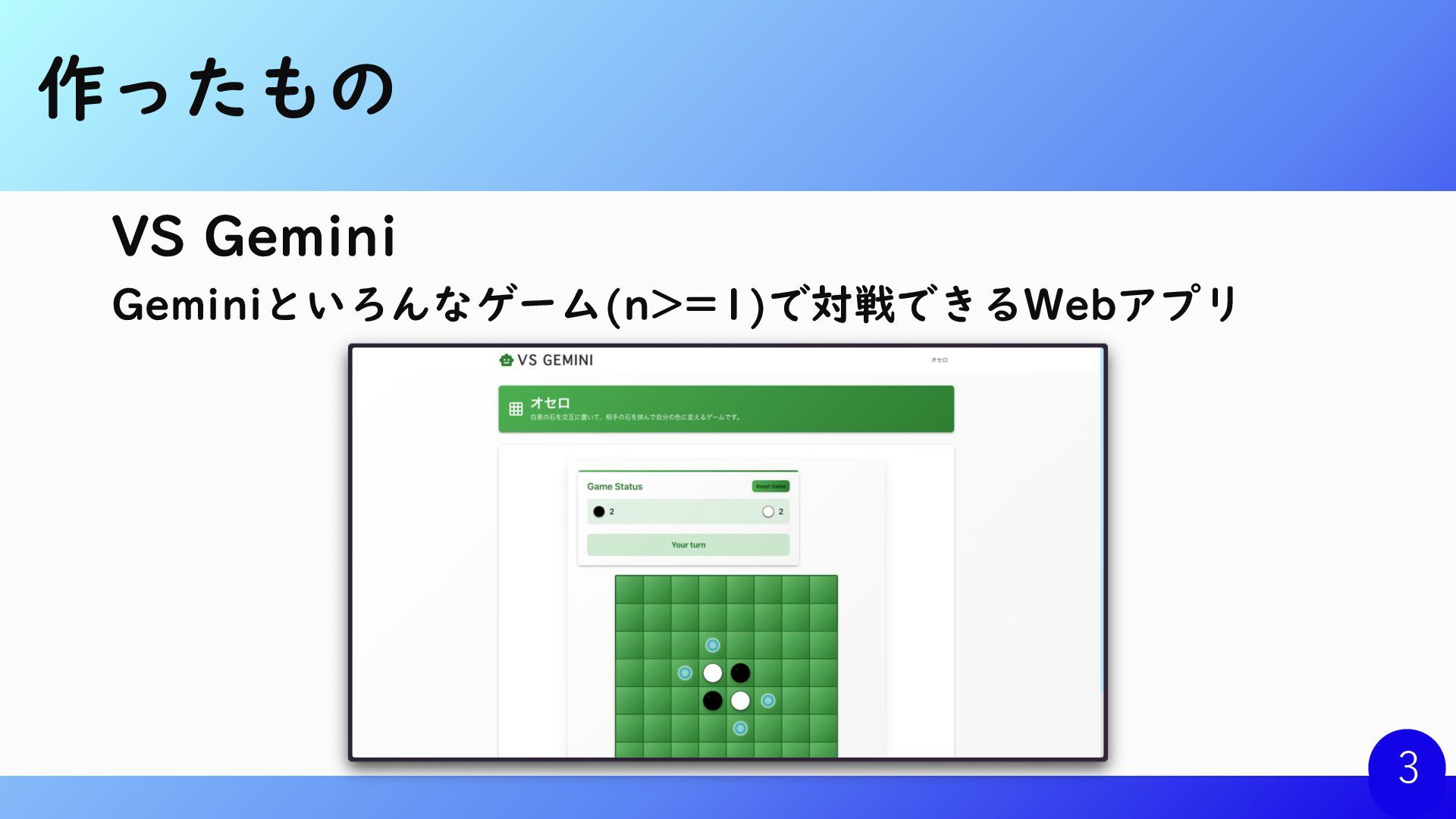 作ったもの VS Gemini Geminiといろんなゲーム(n>=1)で対戦できるWebアプリ 3