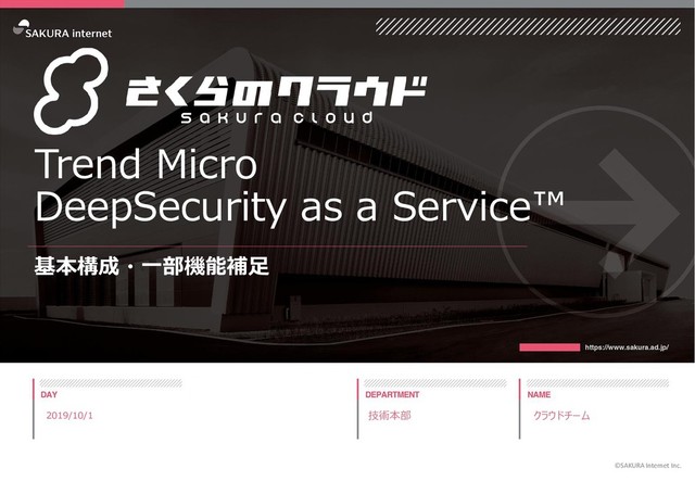 コントロールパネル画面 DeepSecurity as a Service(DSaaS)は、下記の二つにより動作するサービス DeepSecurityAgentインストール 仮想サーバ(VPS・クラウド)・物理サーバ • DeepSecurityManager(DSM):本サービスを管理するためのコントロールパネル • DeepSecurityAgent(DSA):サービスを適用するサーバにインストールするコンポーネント ※DSMのサーバ管理は、TrendMicro社にて実施されます ※管理は、DSaaSにて提供される機能のみとなります ※DSMと提供される各種機能をサーバで利用可能な状態にします 特長として手軽に利用が開始、仮想と物理サーバの環境にインストールが可能 • スクリプト形式 • ファイル形式