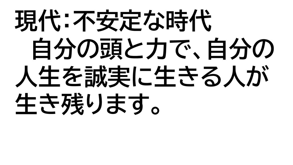 現代:不安定な時代 自分の頭と力で、自分の 人生を誠実に生きる人が 生き残ります。