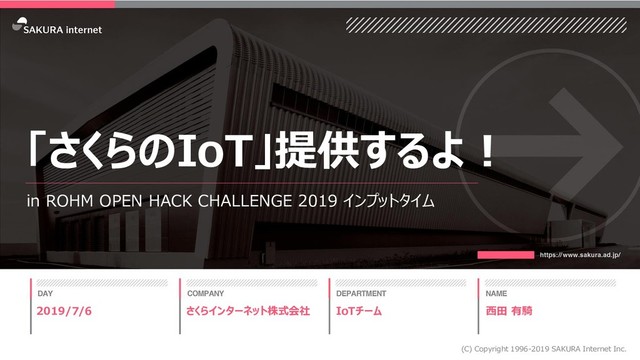 「さくらのIoT」提供するよ! in ROHM OPEN HACK CHALLENGE 2019 インプットタイム 2019/7/6 (C)