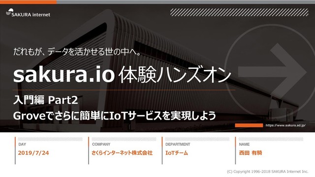 各地で開催されているさくらインターネットが提供するIoTプラットフォーム「sakura.io」のハンズオンでの資料となります。