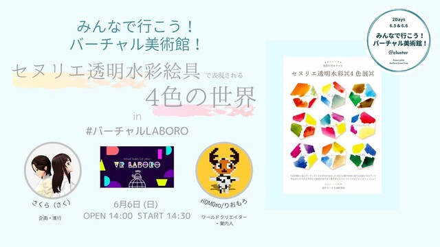 『みんなで行こう!バーチャル美術館!』 Day 2 セヌリエ透明水彩絵具で表現される 4色の世界 in バーチャルLABORO https://cluster.mu/e/0092ceb5-b958-4cc9-aeeb-cea094feb5fc