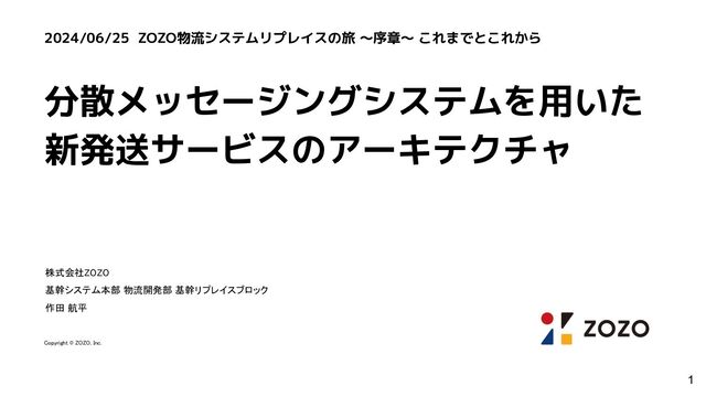 分散メッセージングシステムを用いた 新発送サービスのアーキテクチャ 株式会社ZOZO 基幹システム本部 物流開発部 基幹リプレイスブロック 作田 航平 Copyright