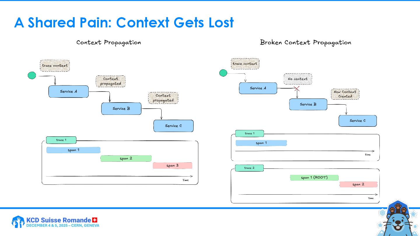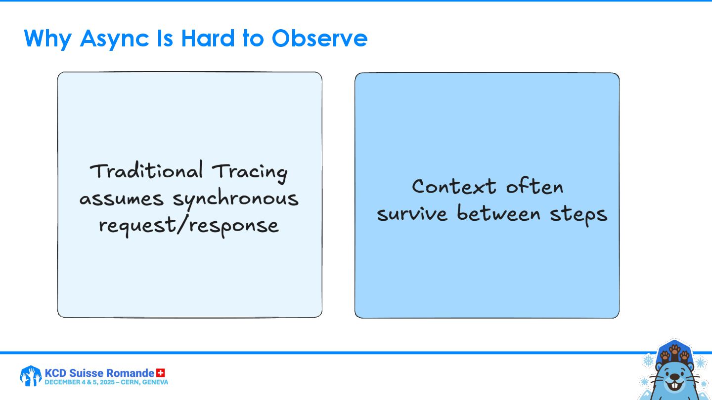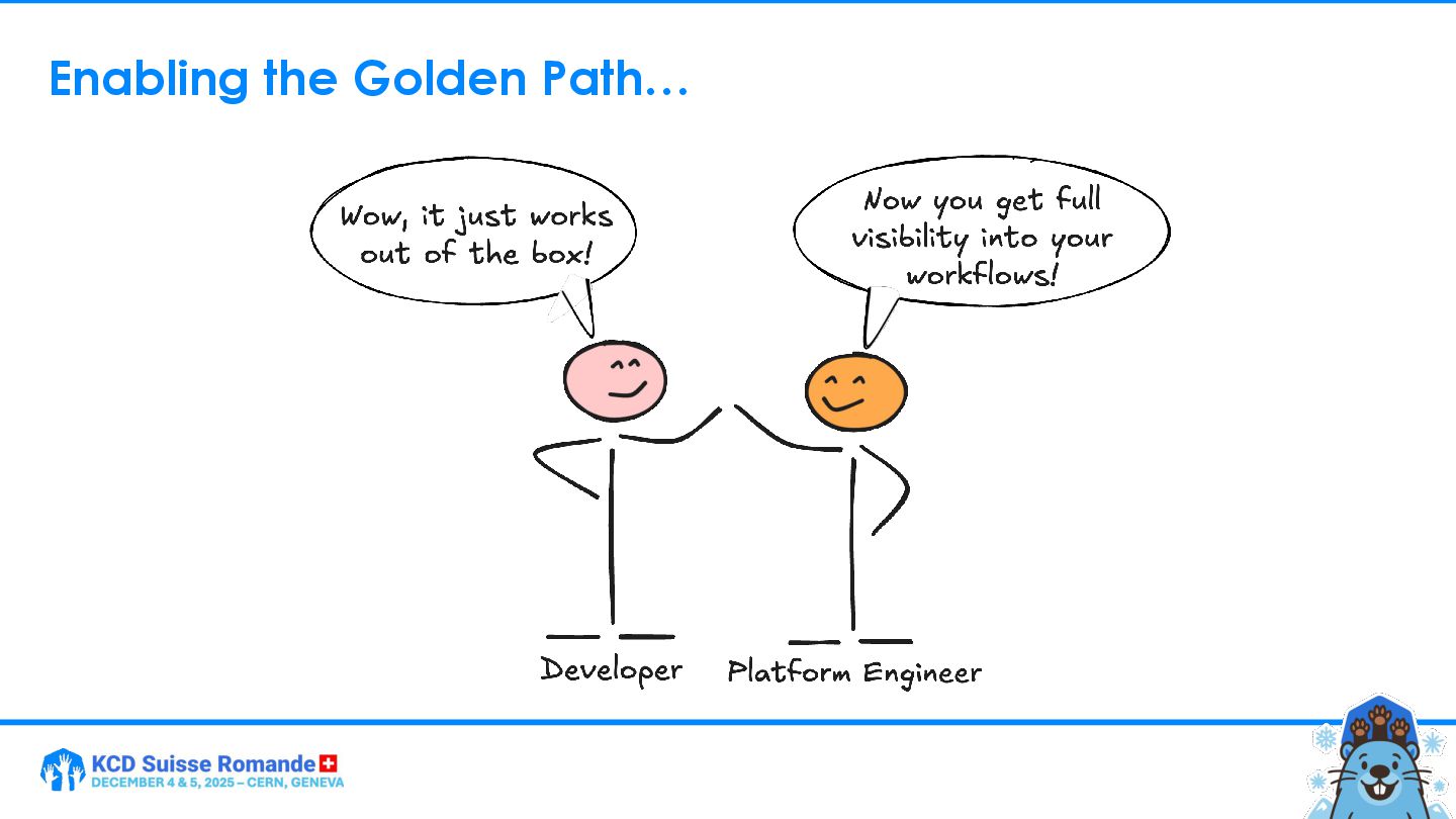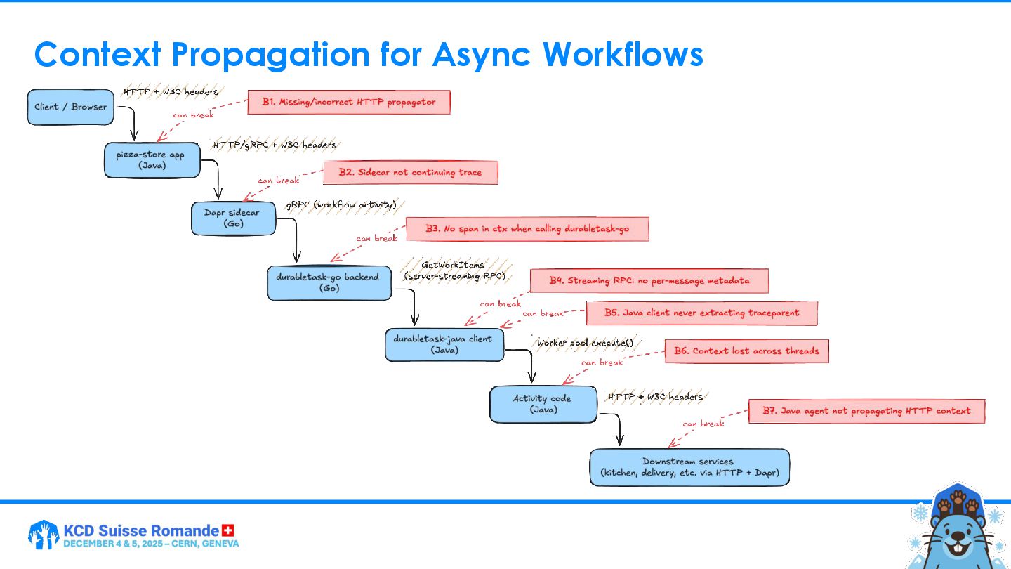 be notoriously hard to observe. In this talk, we show how two CNCF projects - Dapr, for developer-friendly building blocks, and OpenTelemetry, for unified observability - create a golden path that bridges developer productivity and platform reliability. We’ll start by using Dapr Workflows and Pub/Sub to connect and orchestrate services without boilerplate. Then we’ll add the OpenTelemetry Operator for no-touch instrumentation, instantly delivering traces, metrics, and logs - even across asynchronous boundaries. You’ll see current OpenTelemetry capabilities for tracking async requests end-to-end, where the gaps are today, and practical ways to correlate events in complex workflows. Through a live demo, we’ll prove that with the right abstractions, shipping features fast and observing systems deeply can go hand in hand.