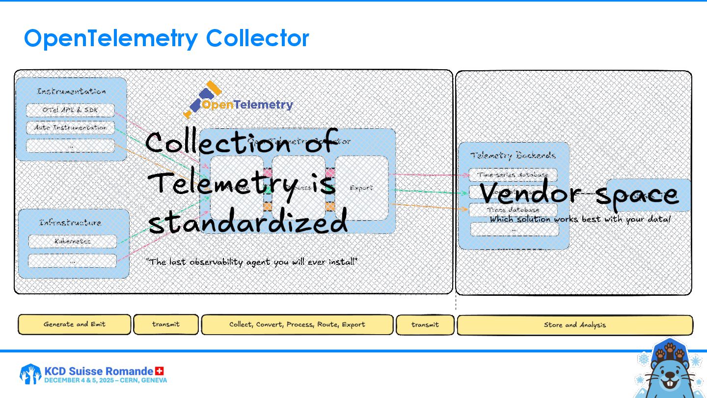 to provide standardized tools and APIs for generating, collecting, and exporting telemetry data such as traces, metrics, and logs The de-facto standard for distributed tracing, supports metrics, logs, RUM, and profiling (experimental) The main goals of the project are: • Unified telemetry • Vendor-neutrality • Cross-platform
