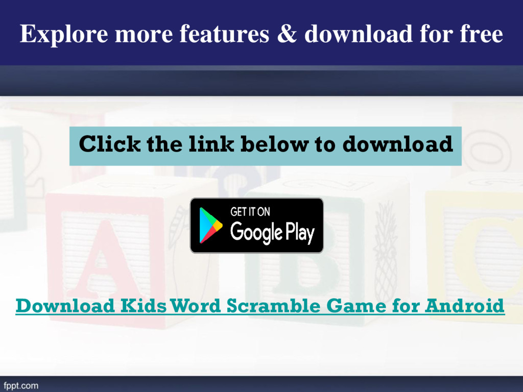 Kids Word Scramble Free Android Game provides platform for kids to learn verity of words with their spelling in a new and different way. A game like Kids Word Scramble will help people to keep their kids on the right track for learning English.
