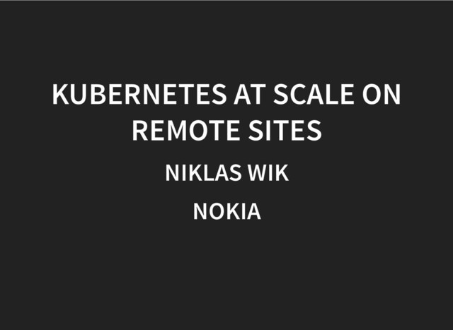 KUBERNETES AT SCALE ON KUBERNETES AT SCALE ON REMOTE SITES