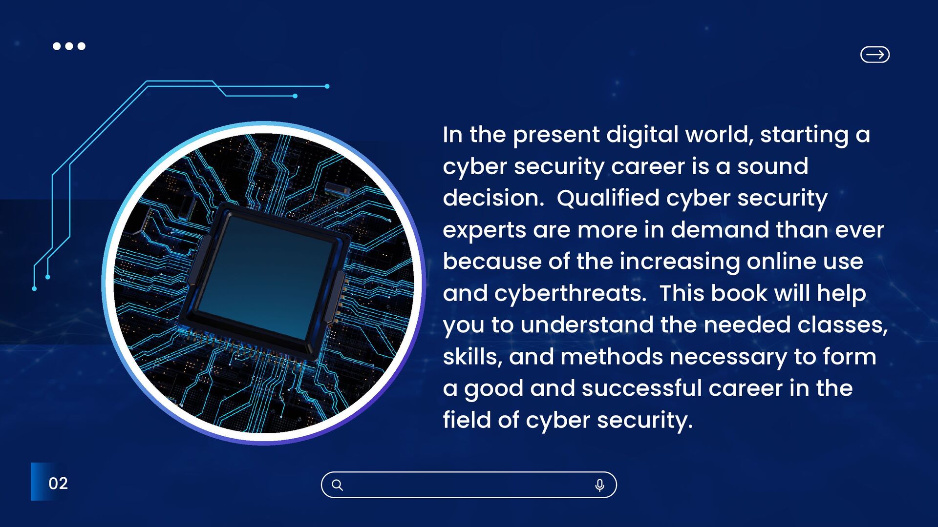is a sound decision. Qualified cyber security experts are more in demand than ever because of the increasing online use and cyberthreats. This book will help you to understand the needed classes, skills, and methods necessary to form a good and successful career in the field of cyber security. 02