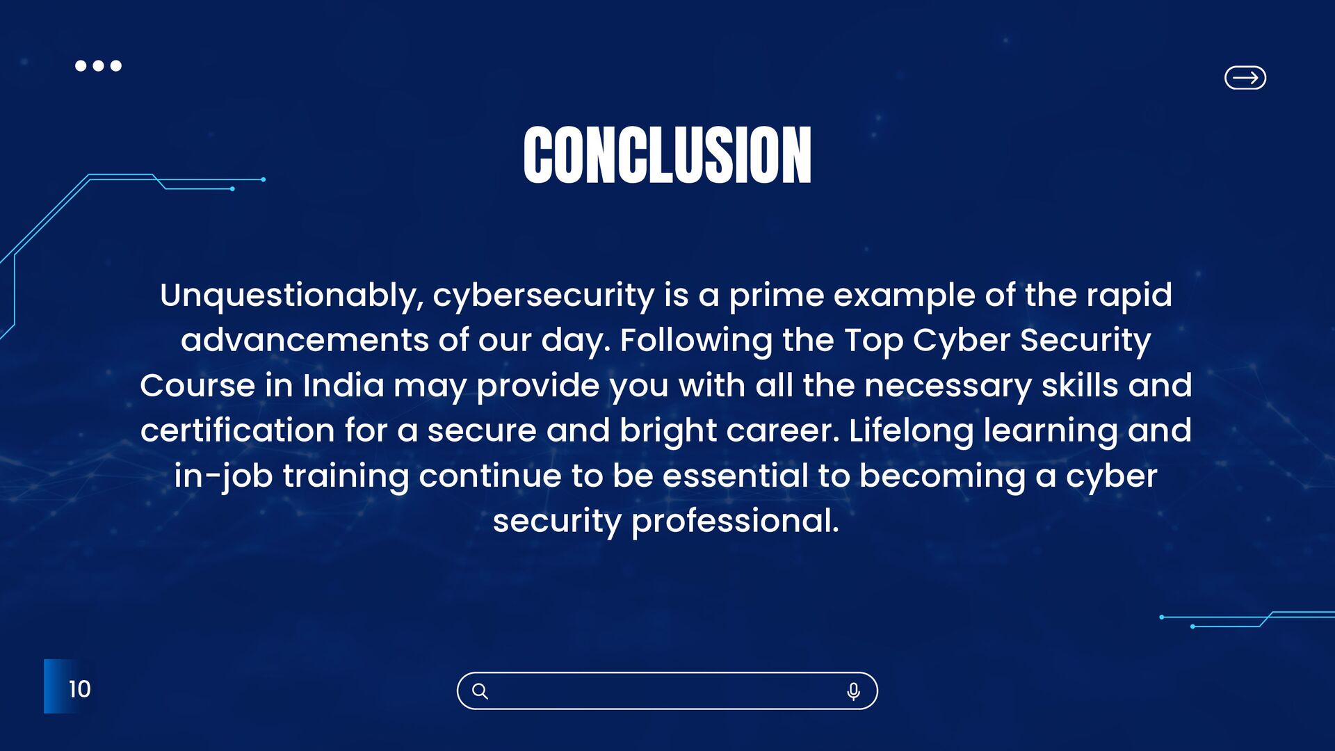 rapid advancements of our day. Following the Top Cyber Security Course in India may provide you with all the necessary skills and certification for a secure and bright career. Lifelong learning and in-job training continue to be essential to becoming a cyber security professional.