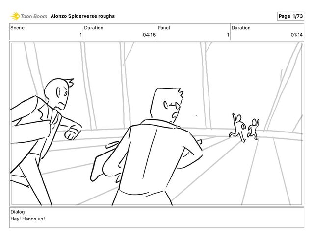 Dialog Hey! Hands up! Alonzo Spiderverse roughs Page 1/73
