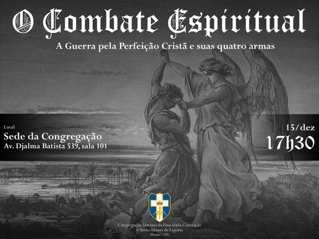 Manaus / AM O Combate Espiritual A Guerra pela Perfeição Cristã e suas quatro armas Local Sede da Congregação Av. Djalma Batista 539, sala 101 15/dez 17h30